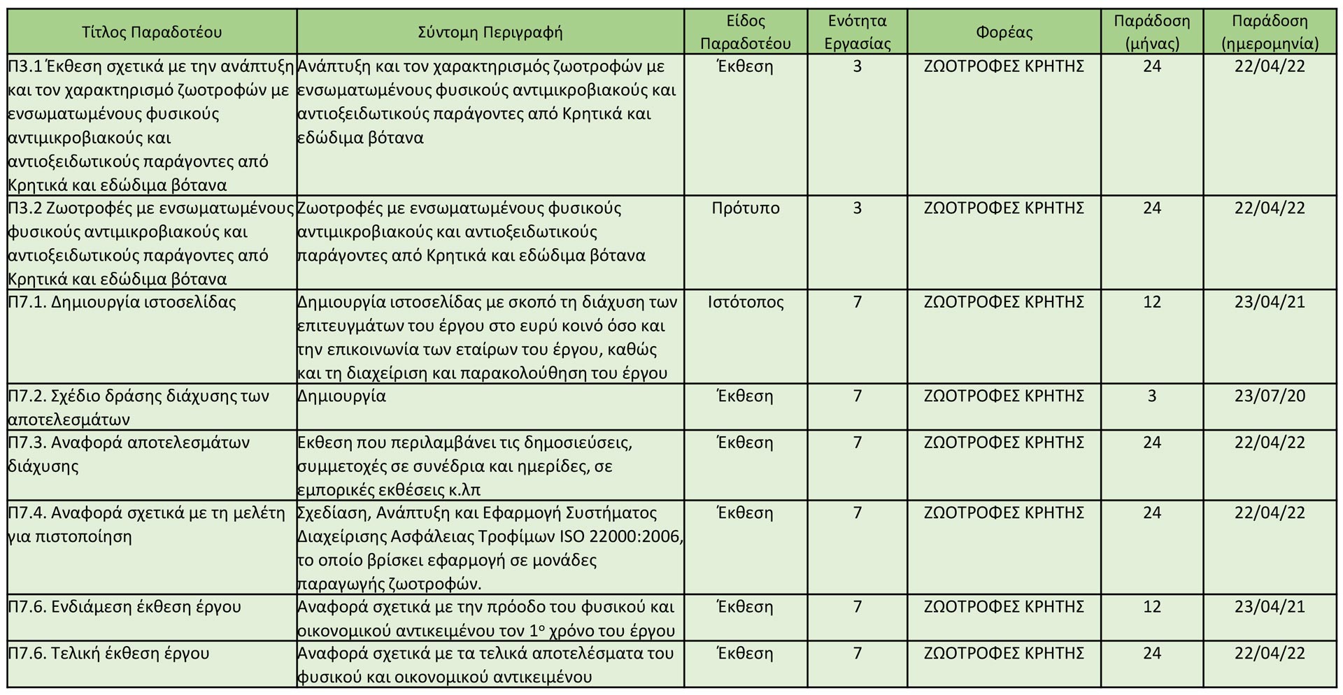 Παραδοτέα ανά Φορέα - Ζωοτροφές Κρήτης