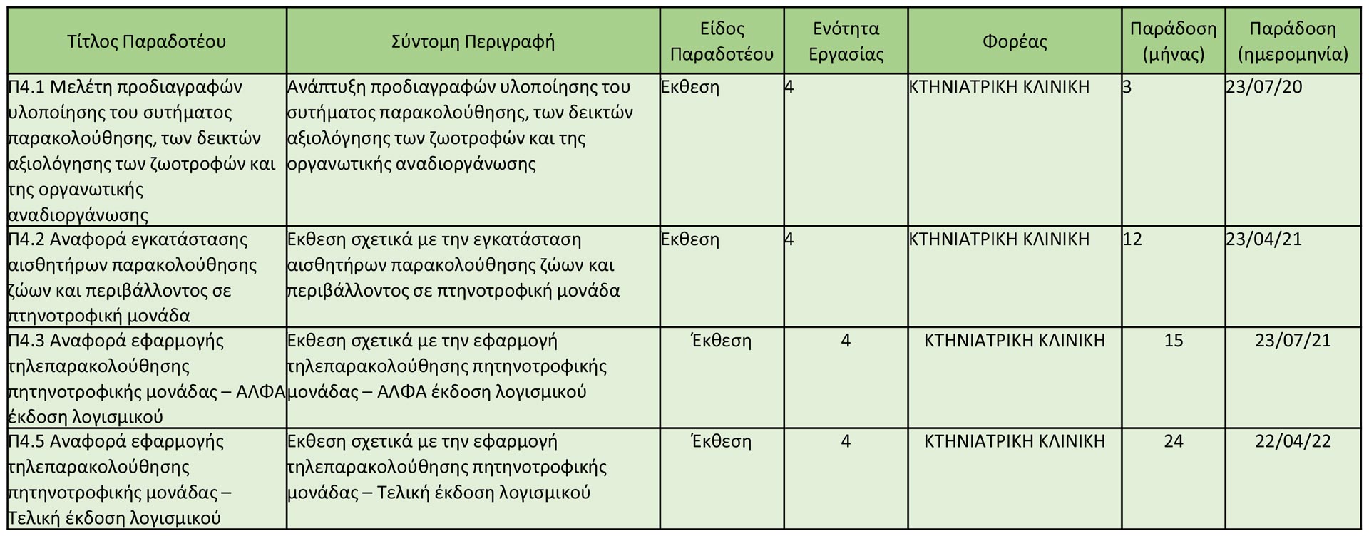 Παραδοτέα ανά Φορέα - Κτηνιατρική Κλινική