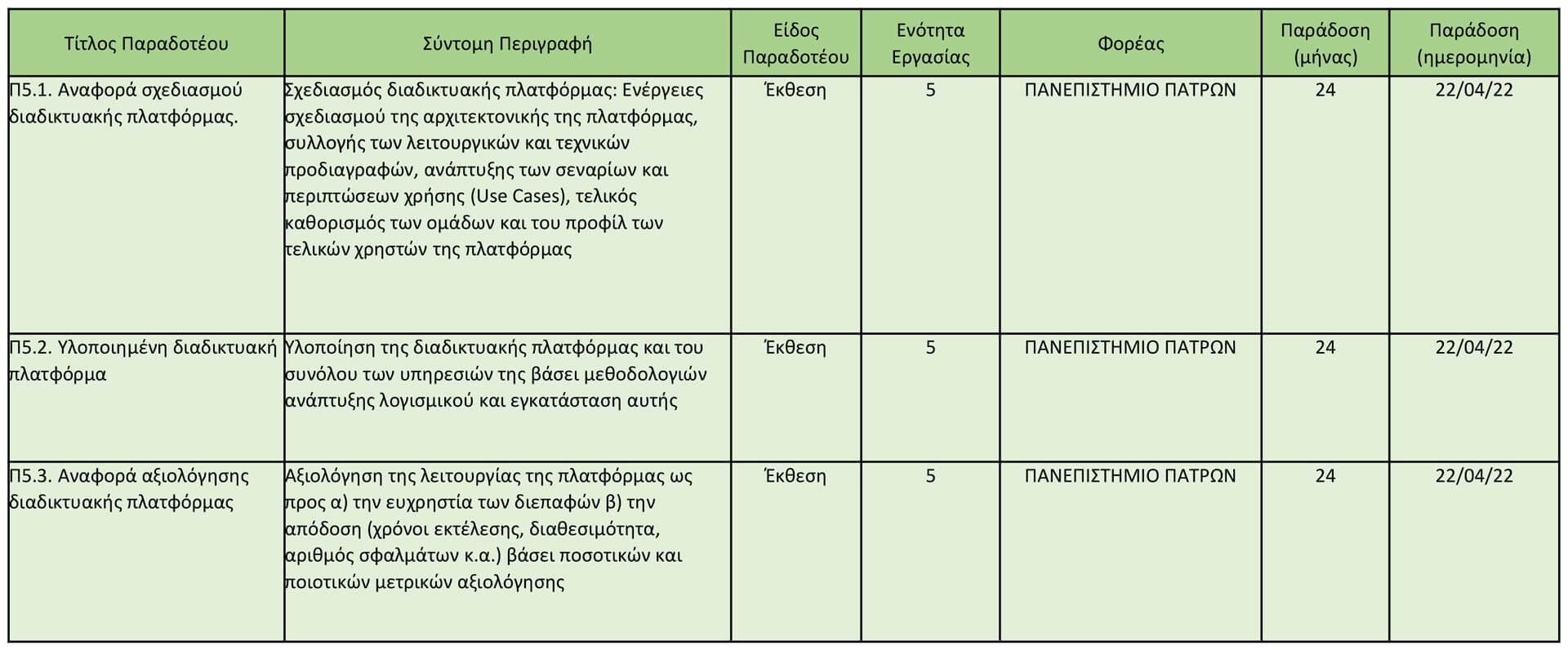 Παραδοτέα ανά Φορέα - Πανεπιστήμιο Πατρών